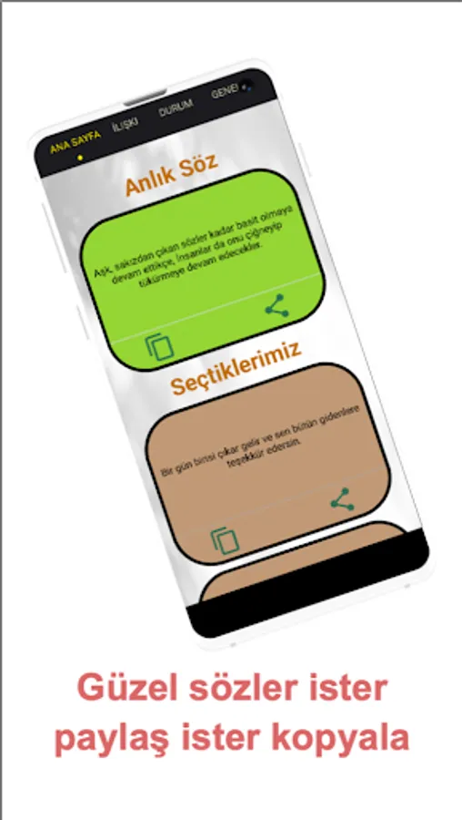 Our application is very simple to use. Just download our app, choose the category you want and discover the most beautiful sayings. You can easily copy or share the lyrics.