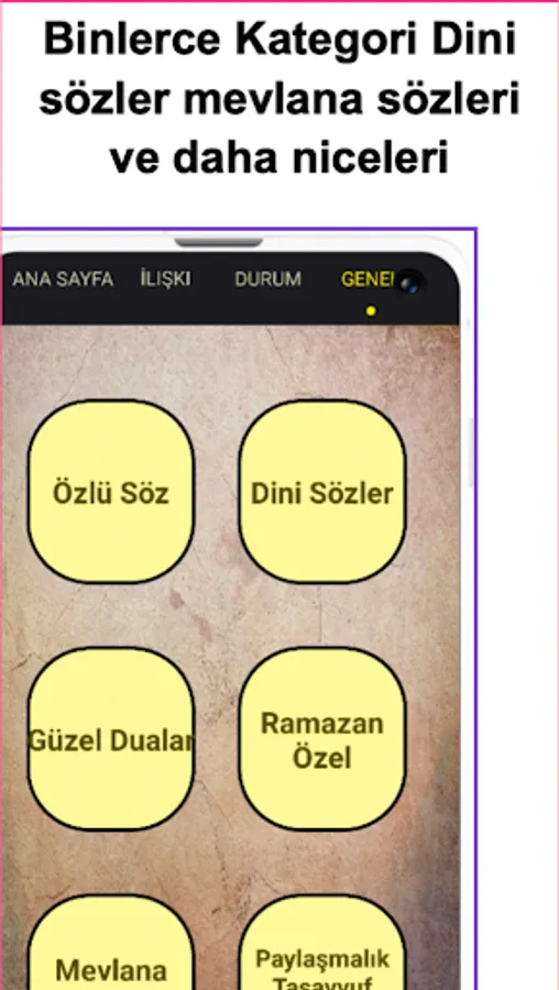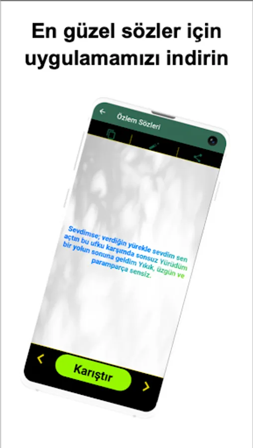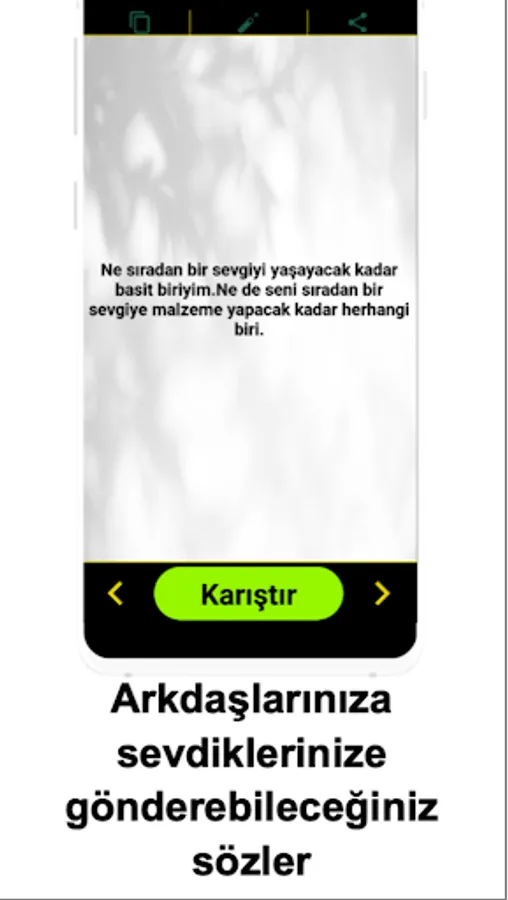 There are many categories in our application. There are love words, parting words, religious words, birthday words, valentine's day words, Christmas words, father's day words, mother's day words, holiday words and many more categories. In this way, it is possible to send the most beautiful words to your loved ones on every special day.
