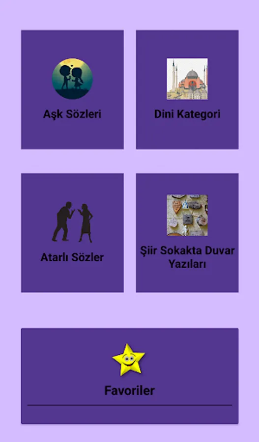 There are many different categories in our application. These include categories such as Love, Meaningful Words, Picture Friday Messages, and Illustrated Religious Words.
