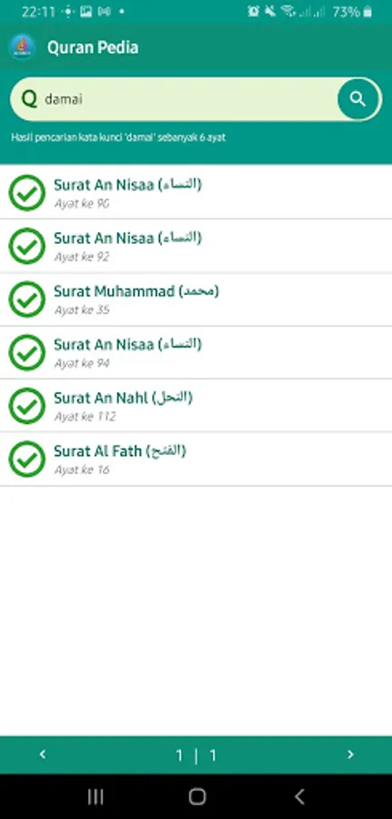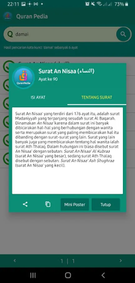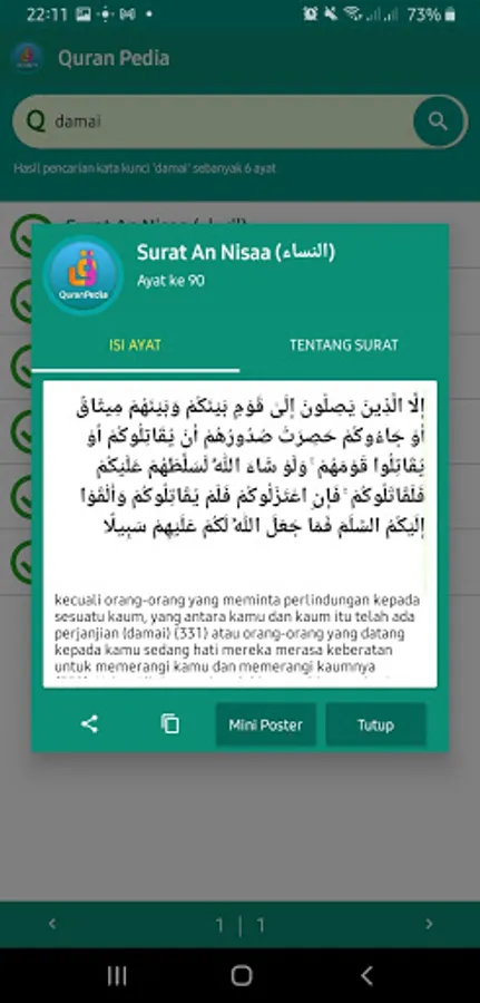 Quran Pedia (QPedia) is an android-based application to make it easier for users to search for verses of the Quran according to the entered keywords.