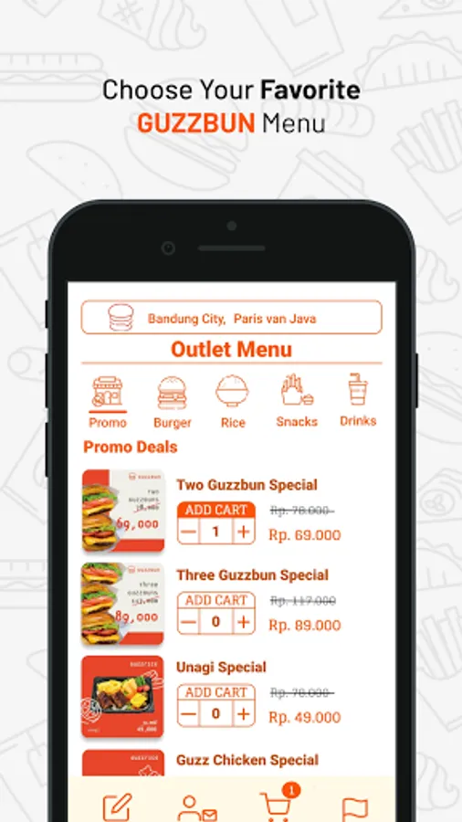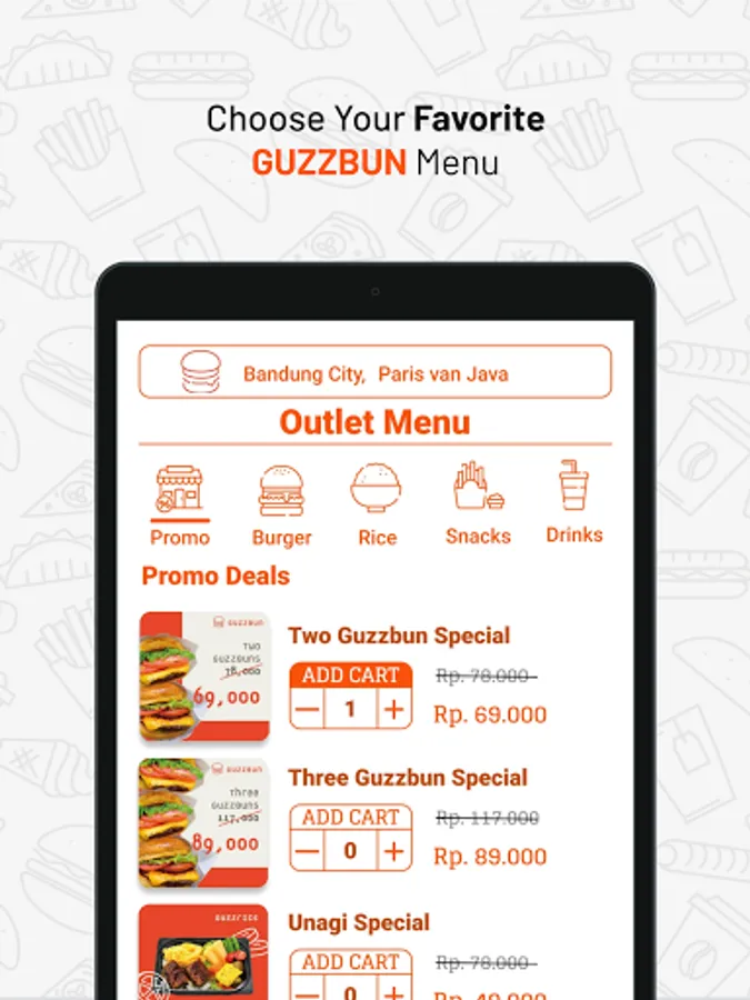 Dengan Aplikasi Anda bisa memesan produk Guzzbun dengan lebih mudah secara online.