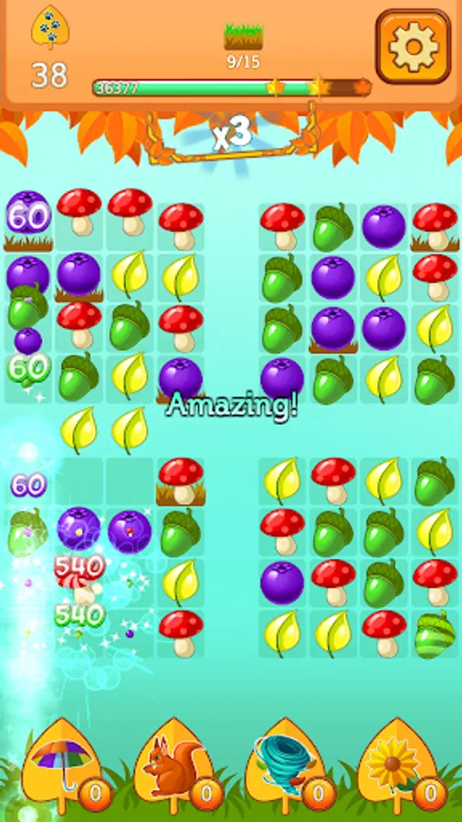 Go into the forest fall garden and travel over the acres of all seasons. Match the items such as mushroom, umbrella and pine cone to achieve the highest score. Make super combinations for extra power ups and boosters to get even higher! Swap with every tile and make sure you are the best player in the forest fall garden!