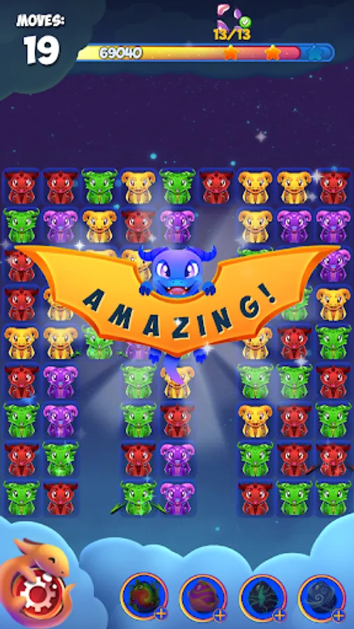 Sky Dragon Stars, the magic match puzzle game to play. Help Luna and link dragons and eggs. This matching game is about the sky dragon stars that are living in the galaxy. Match three and create an epic egg surprise with the powerful boosters! Can you trigger the magic match puzzle game link, and win the challenge for Luna?