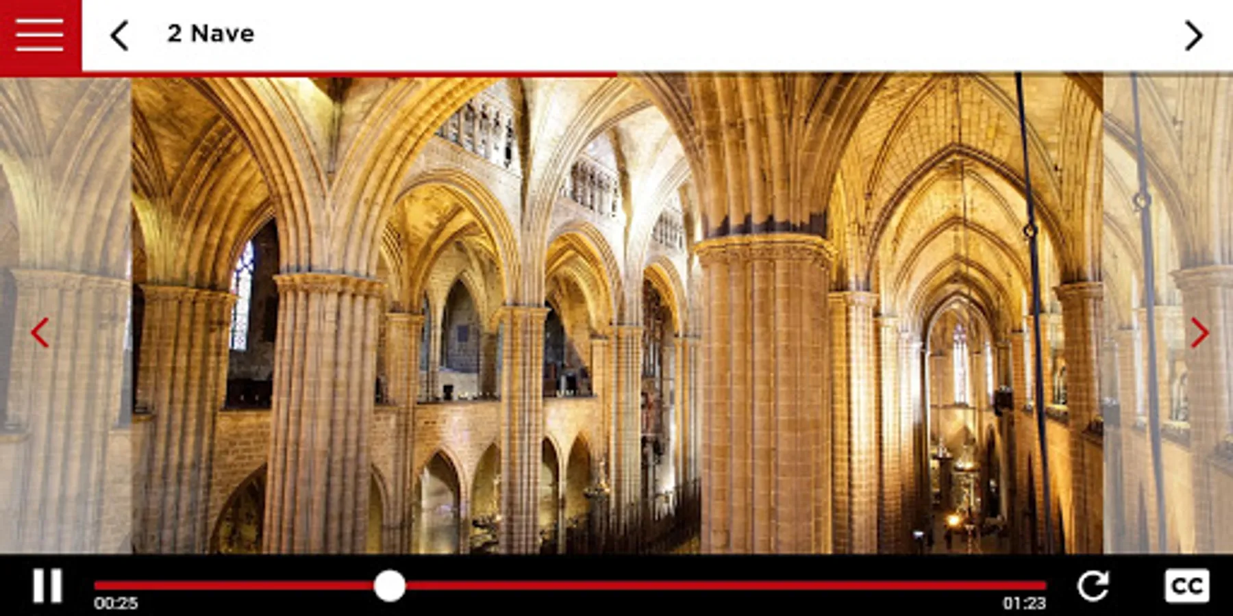 Discover the Cathedral of the Holy Cross and Saint Eulalia in this guide, with its audio, videos, historical images, high-definition and panoramic 360º photos. Has two tour options which are adapted to the time you have for the visit. In addition, there is a third tour for the terraces of the Cathedral. A panoramic visit to get to know all the notable buildings of the city’s skyline. A unique experience! Languages available: Español, Català, English, Deutsch, Italiano and Français; all with subtitles. We hope you enjoy your visit! The reuse of this material for commercial purposes, the redistribution of this app or any other use going against the rights of ownership and use pertaining to the authors listed in the “Credits” section is prohibited.