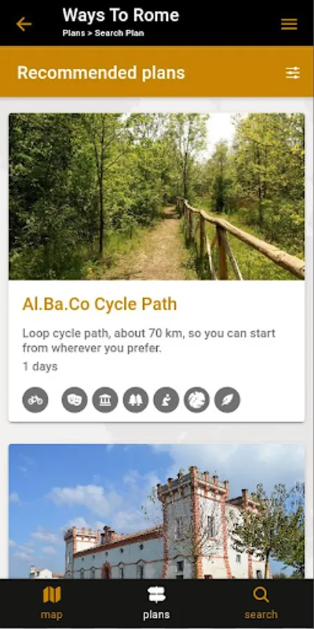 You can activate your previously designed plans or fill in the form with a starting and ending place, dates and topic preferences. You will get a personal daily plan divided in hours and days. You can also access to recommended plans from organizers and other pilgrim plans you can join or use as inspiration for yours.