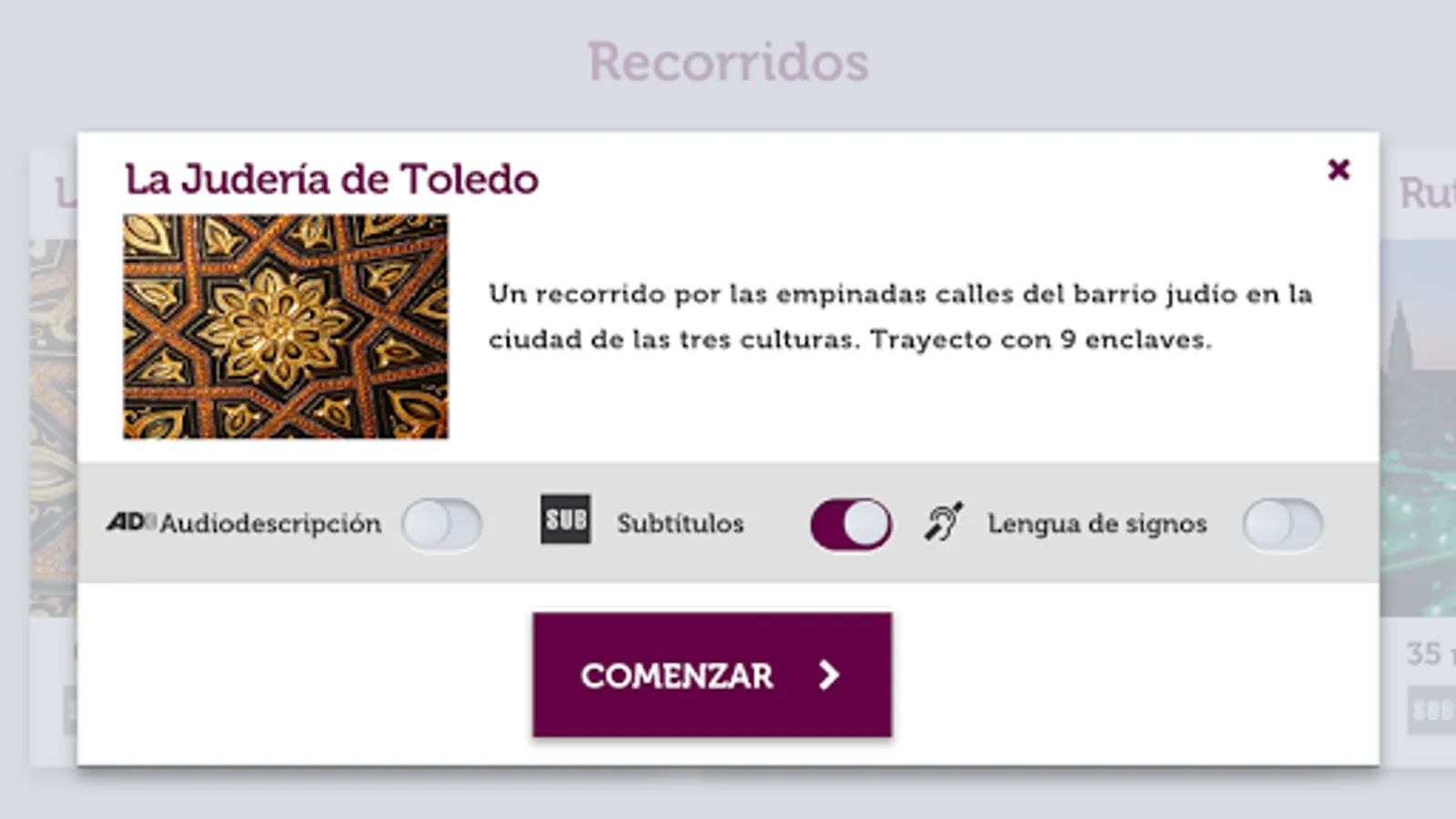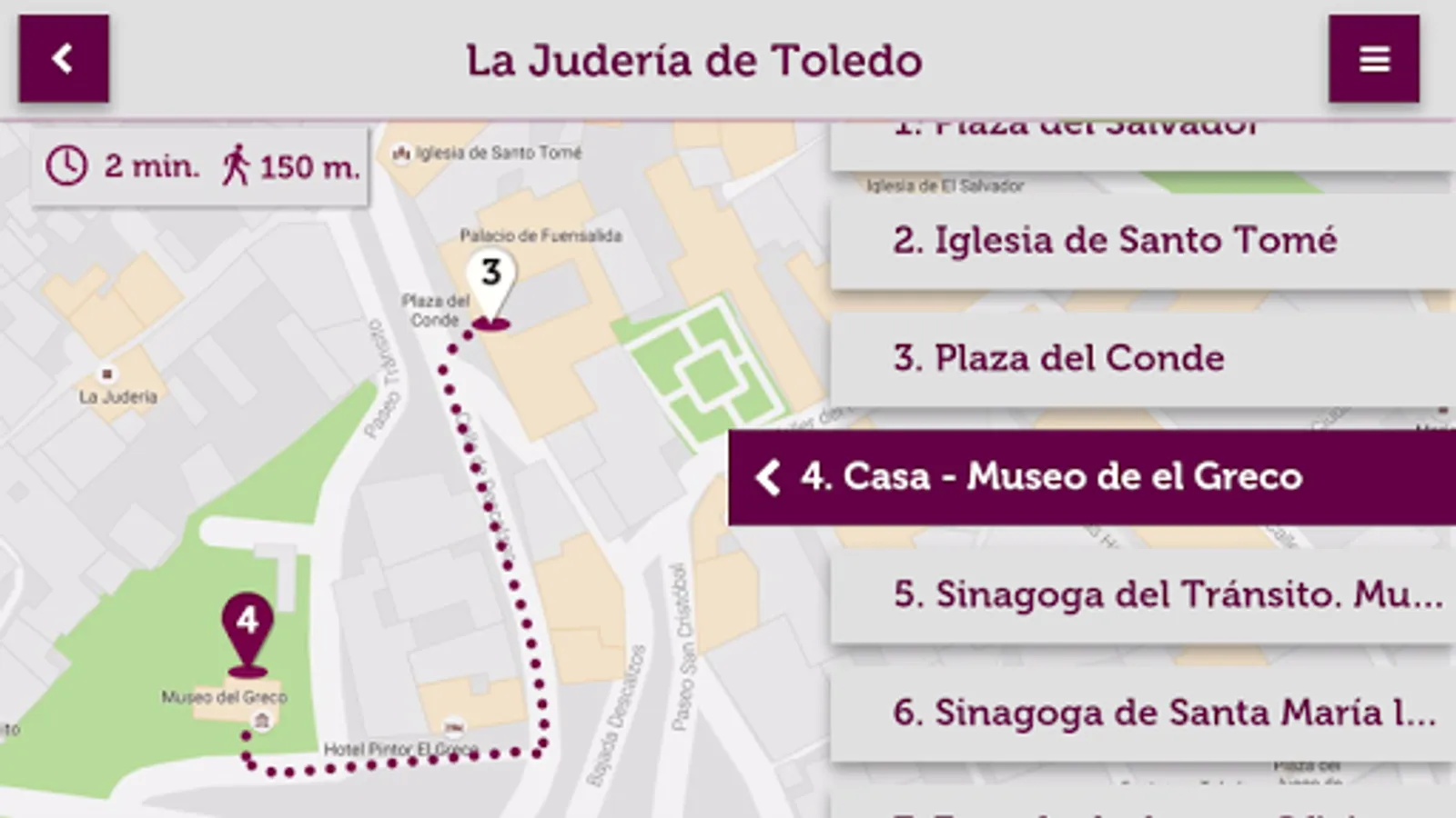 You can choose from several themed tours, download them to your phone and enjoy a guided tour tailored to your tastes and needs. It has four routes available, from an approach to the city through El Greco to Toledo tour of the night. Each route includes maps to guide between different points, images, audio descriptions and GPS function.
