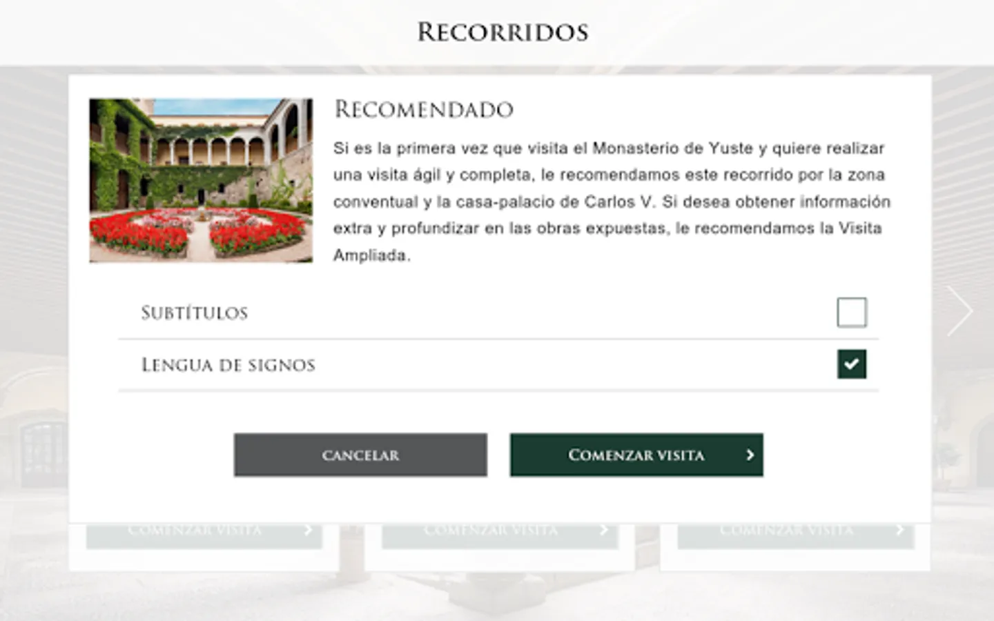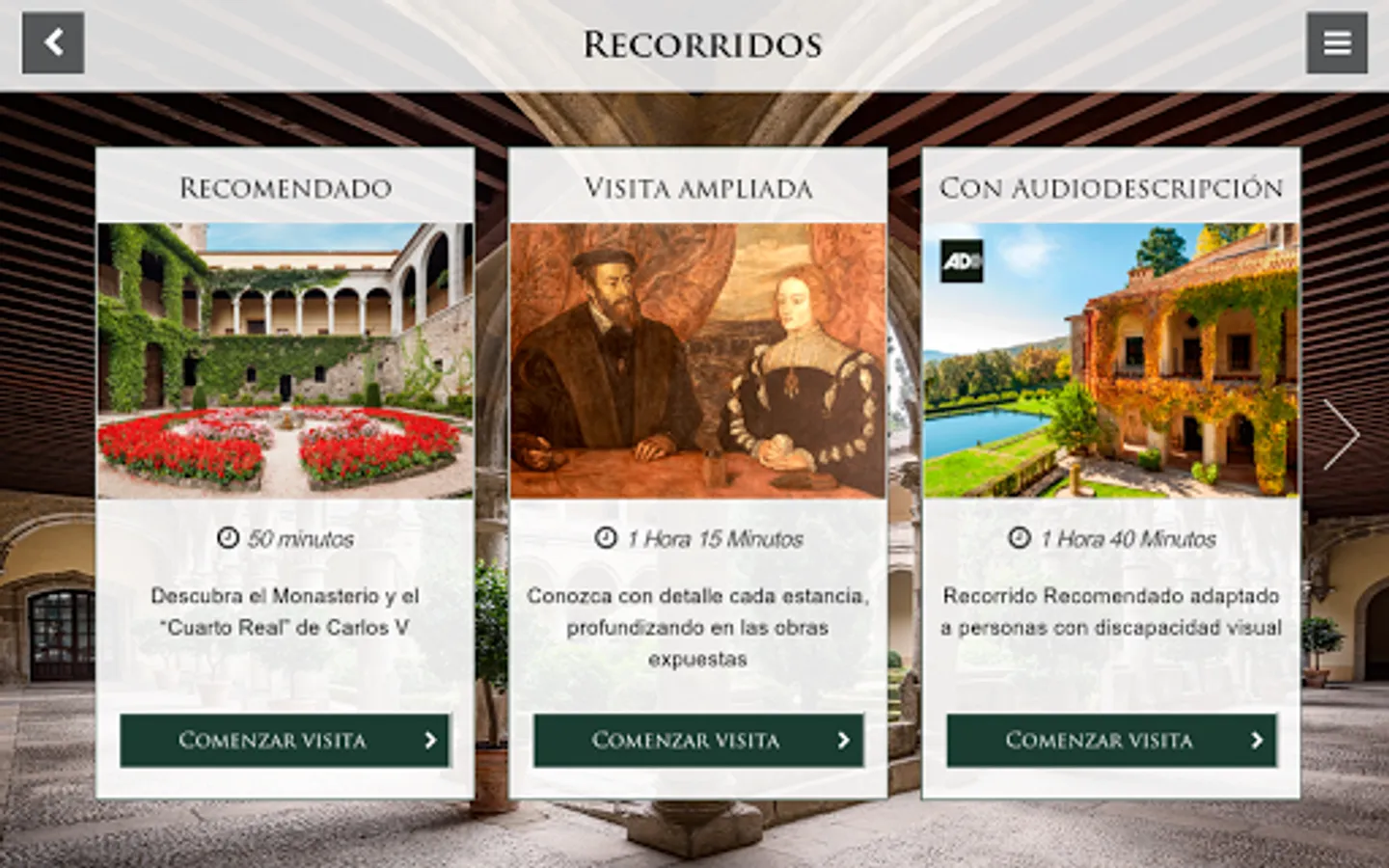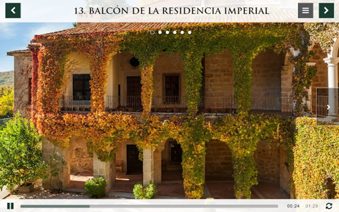 Discover with this official audio-guide the past and present of the Monastery of Yuste, through videos, historical images and high resolution photos. You can select the route that best suits your tastes and time available! The contents are available in 16 different languages. It also includes subtitles, videos in sign language and audio descriptions for the visually impaired.