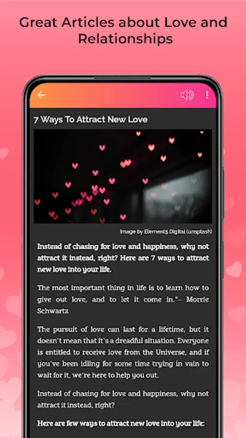 The app contains interesting and best articles to read on topics like Love and relationships, health, happiness, creativity, positive thinking, self-help, habits, life lessons, motivation, self-improvement, confidence-boosting, and more.