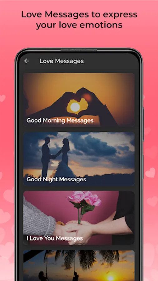Express how much you love your beloved with some simple but meaningful romantic love message. We've come up with the best love messages including the cutest couple quotes and quotes about love to share with the one who holds your heart. Whether you need anniversary messages to celebrate your big day together, want to send sweet good night messages and good morning texts, or are simply reminding someone of your affections, the options on this app will help you convey your feelings. 💕.