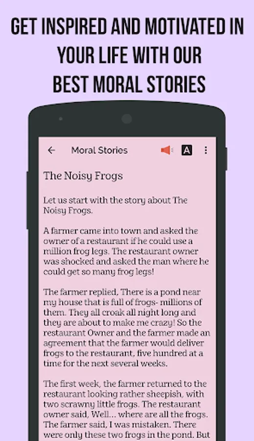 Moral Stories app is an amazing collection of classic short moral stories for everyone on Education, Motivation, Inspiration, Love, Family, Fables, Short Bedtime Stories that refreshes your life by imbibing the lessons learned from these short stories with good morals.