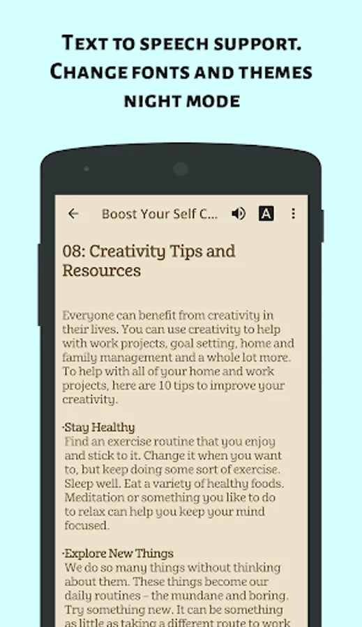 - Use Night Mode to protect your eyes, reading is the light in the dark.