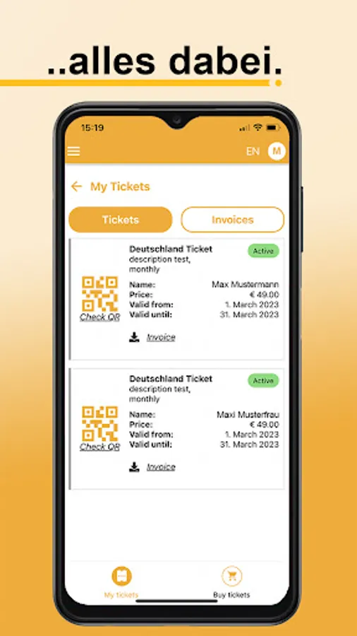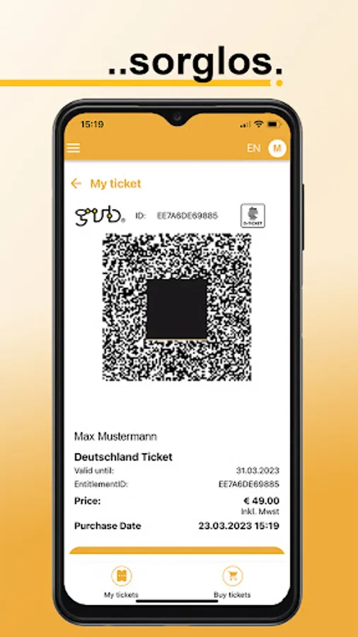 Always have the Deutschlandticket with you on your mobile phone. Simply register, buy a ticket and off you go. Haven't you driven for a month? No problem - it's a monthly cancellable subscription!