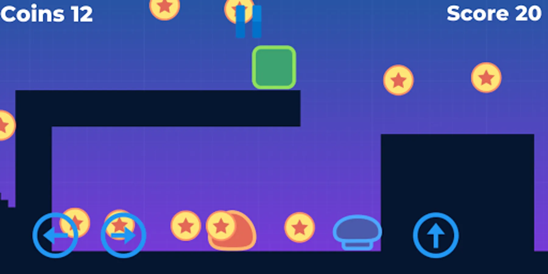 bounce on the heads of your enemies for points, use bump to propel green block up.