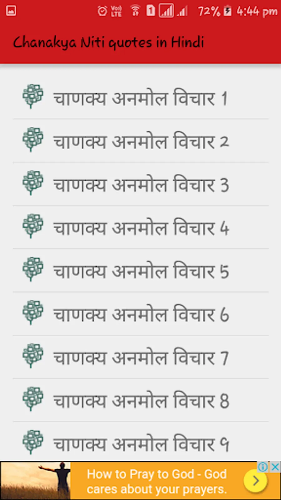 We can consider this a virtual chanakya niti in hindi full book. This chanakya niti app contains a lot of wise sayings of Chanakya that are time immortal. This is chanakya niti for students who want to follow the wise sayings of Chanakya the great scholar. This app chanakya niti Hindi is make for people of Indian Origin and also for people who know sanskrit and like to follow the wise sayings of Chanakya.