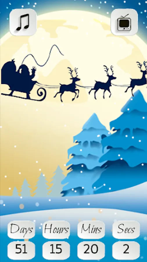 This app shows the countdown until next Christmas, in days, minutes and seconds! You can change the background wallpaper gifs, while you are listening to the music!