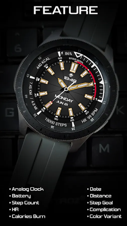 Analog Sport V5 watchface for daily and sport activities. For Wear OS smartwatch. Feature :