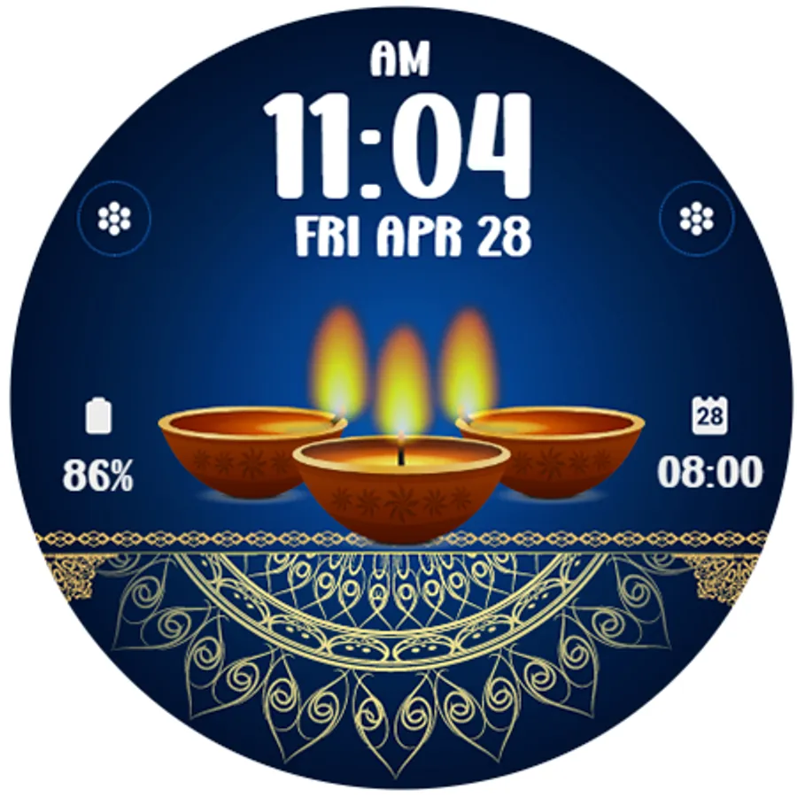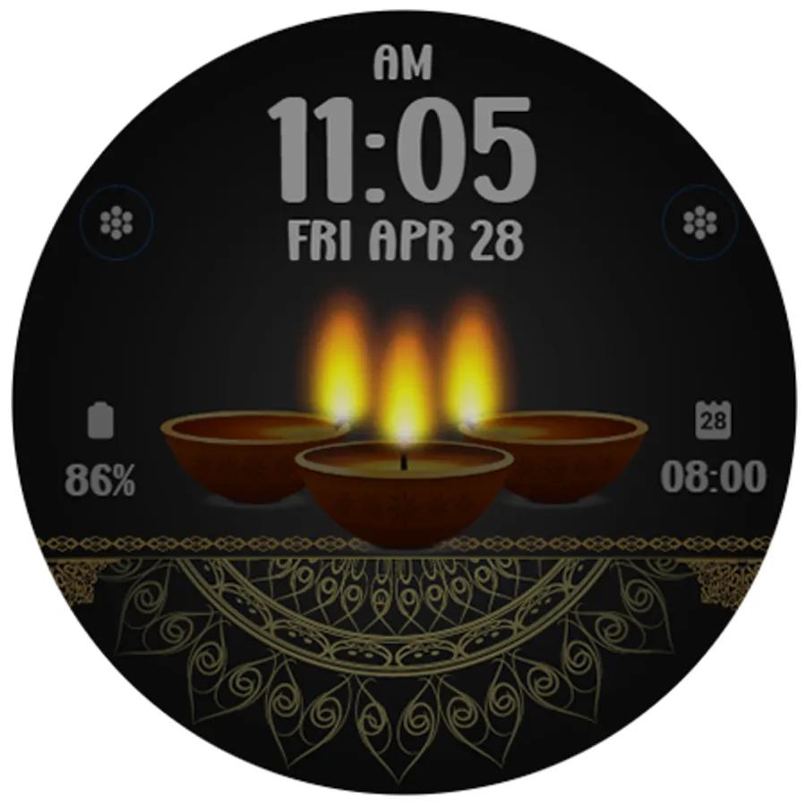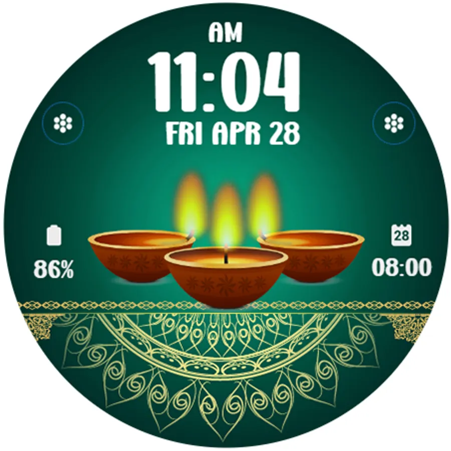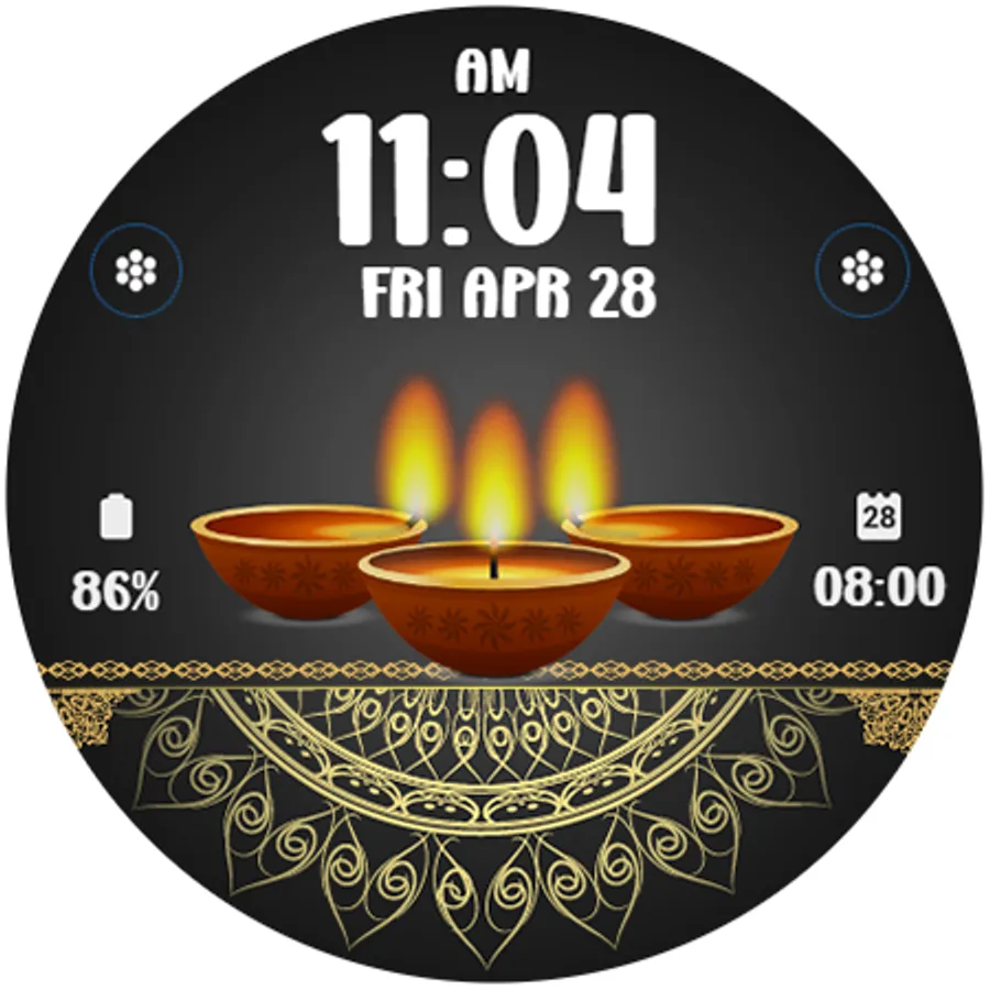 Digital watchface to celebrate Diwali Day. For Wear OS smartwatch. Feature :