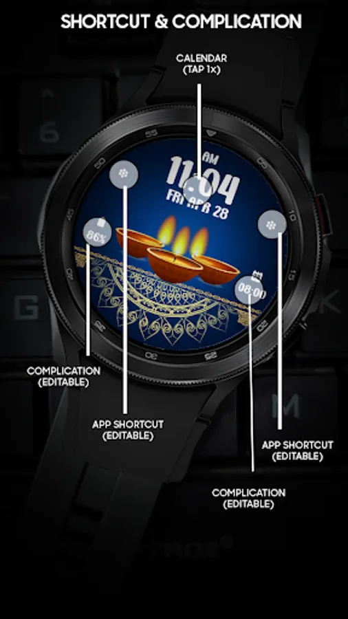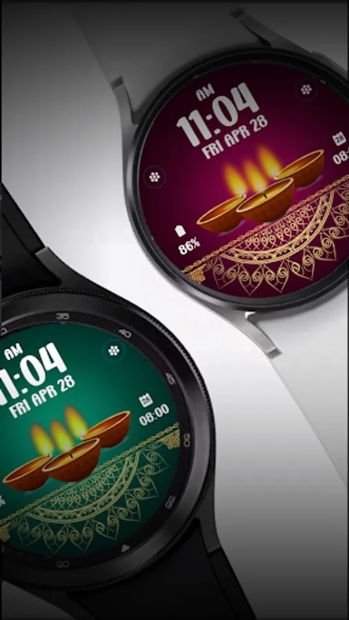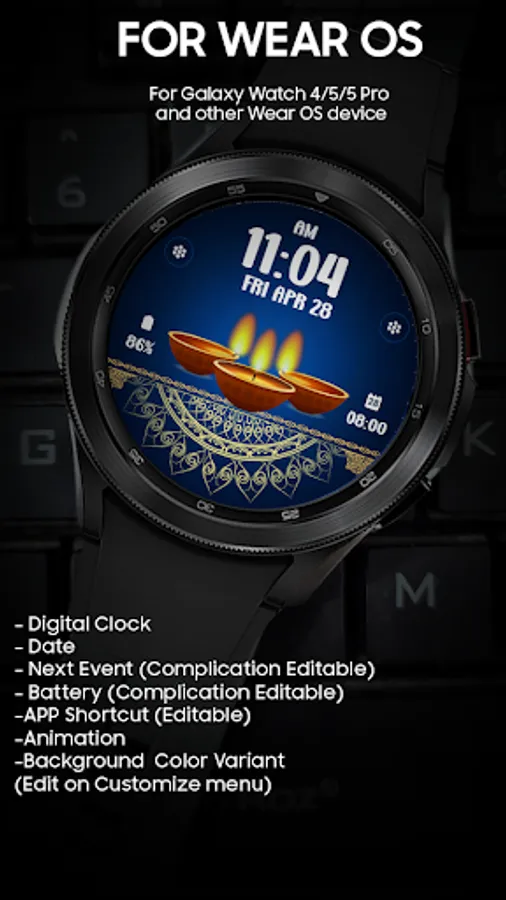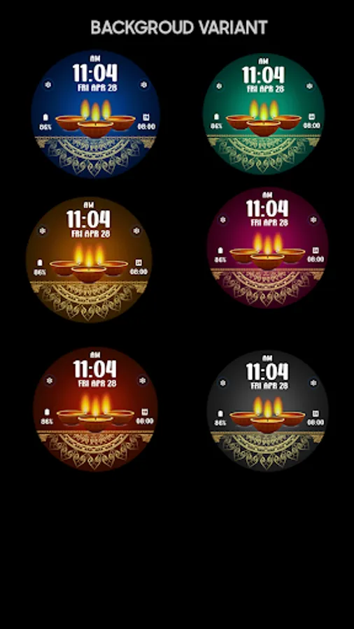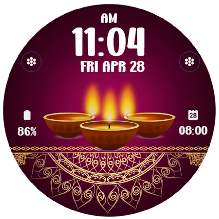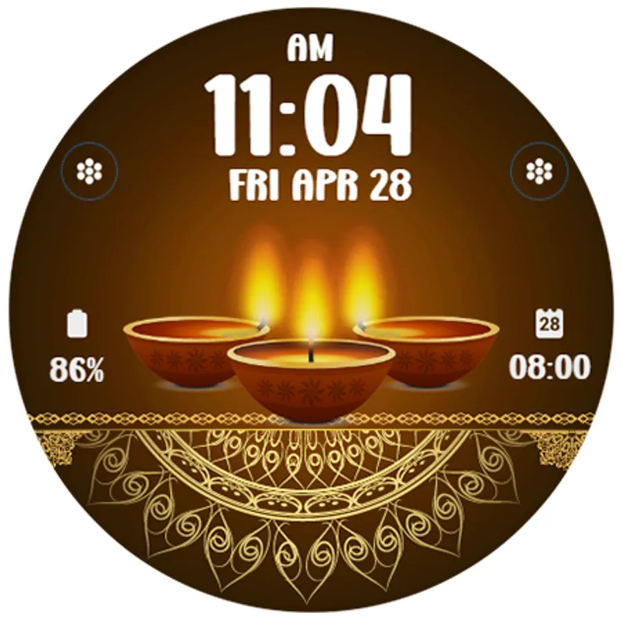 Digital watchface to celebrate Diwali Day. For Wear OS smartwatch. Feature :