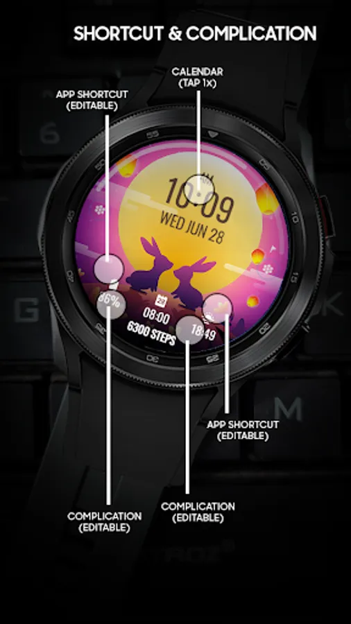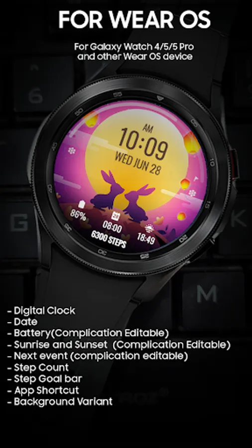 Digital watchface for celebrate Fullmoon festival. for Wear OS.