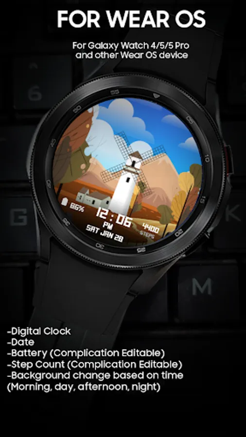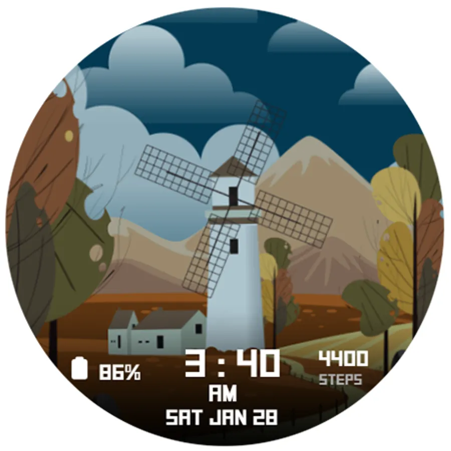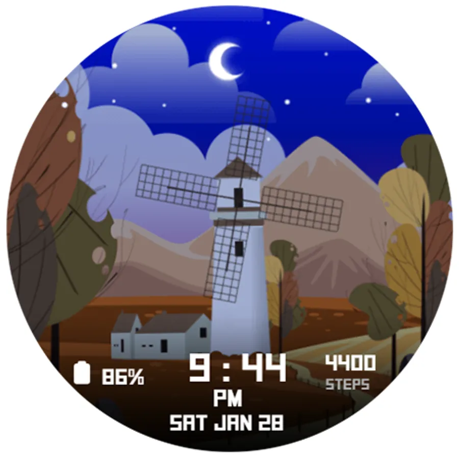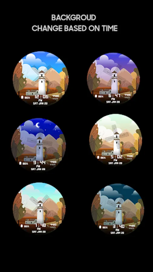-Background Change based on time (Dawn, Morning, Day, afternoon, sunset, & night)