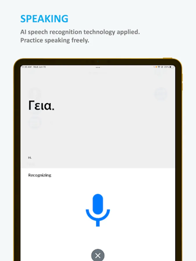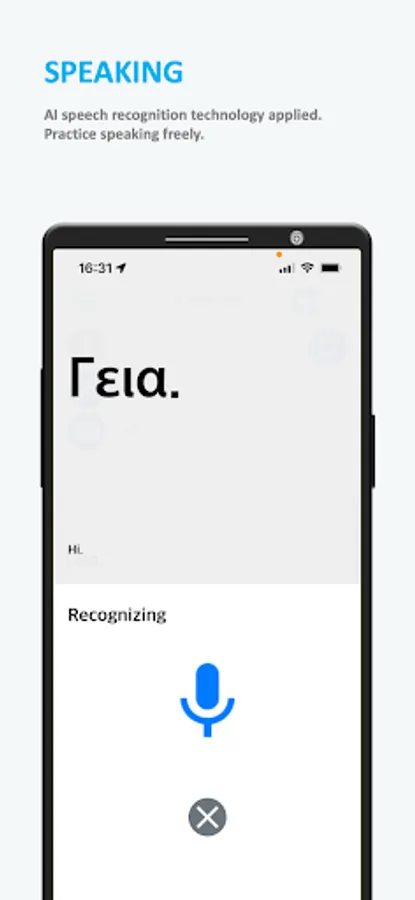 Improve your Greek speaking skills with our AI speech recognition technology that recognizes and displays your spoken words. Practice speaking Greek characters, numbers, vocabulary, and dialogs.