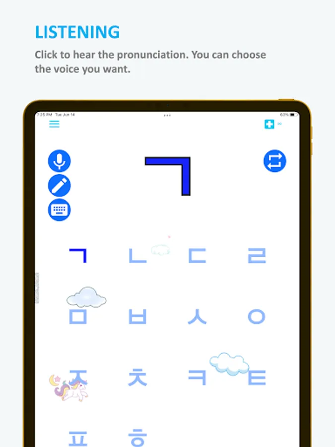 After taking an Korean class, how about reviewing Korean at home? As an Korean tutor in your hand, we teach you to read, listen, speak, and write.