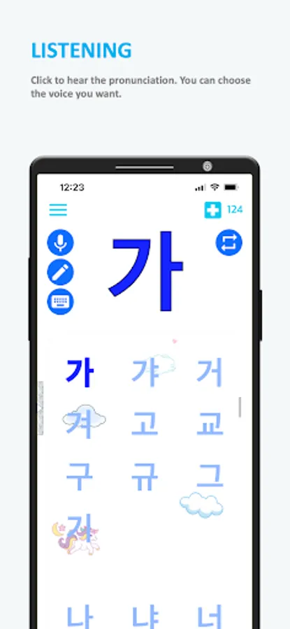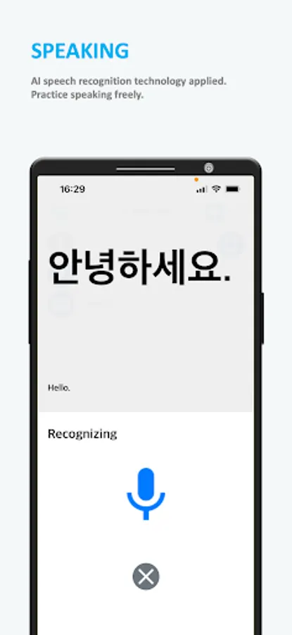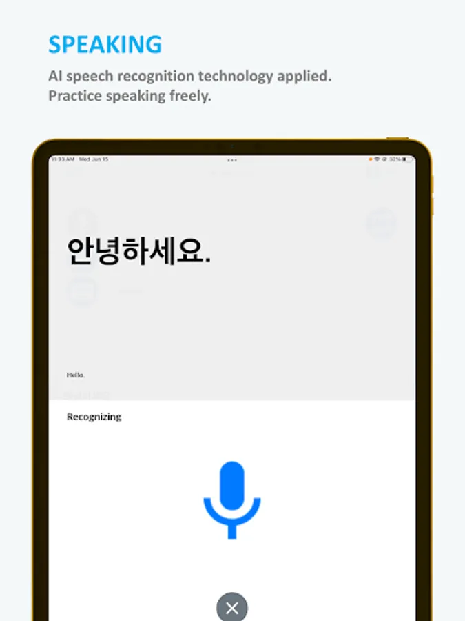 AI voice recognition technology is applied. Practice Korean speaking and check your pronunciation.