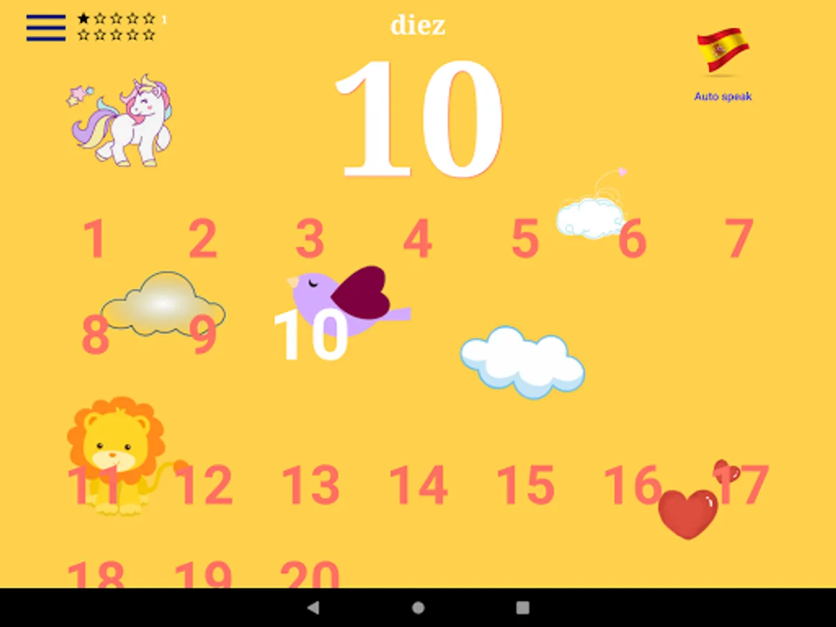 · When you press a word, letter, or number, the pronunciation of the selected learning language is heard.