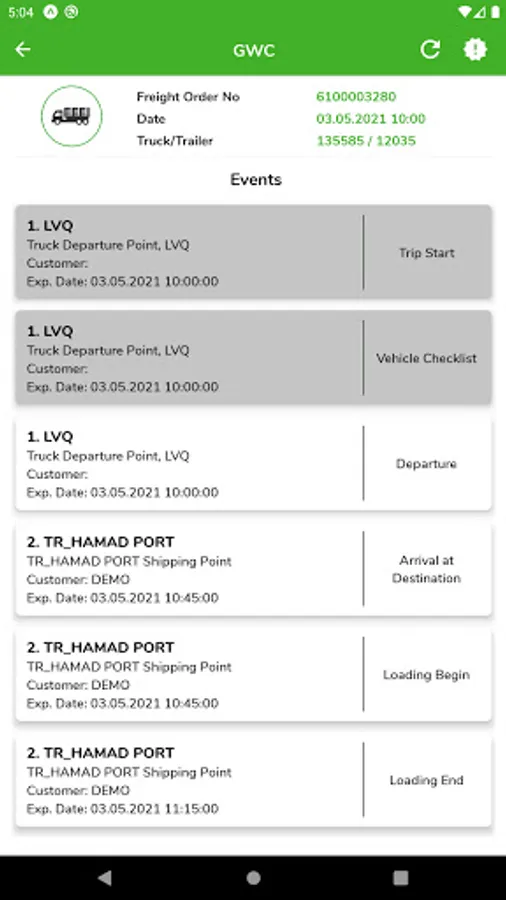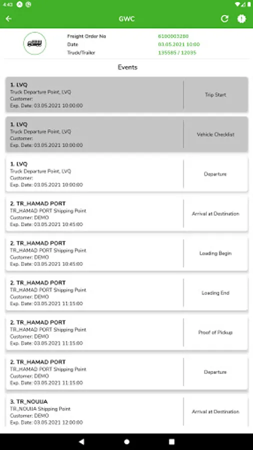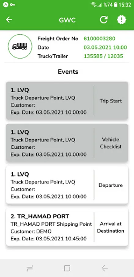 - Report all events like loading, unloading etc. on real time basis