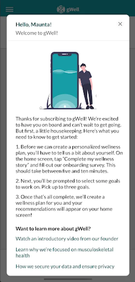 gWell is a wellness platform powered by data, science, and by you. Whether your goal is to sleep better, recover from an injury, or run a marathon, gWell gives you a path to wellness that is personalized for you.