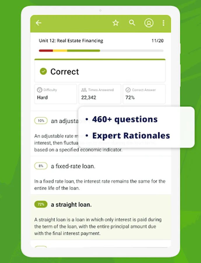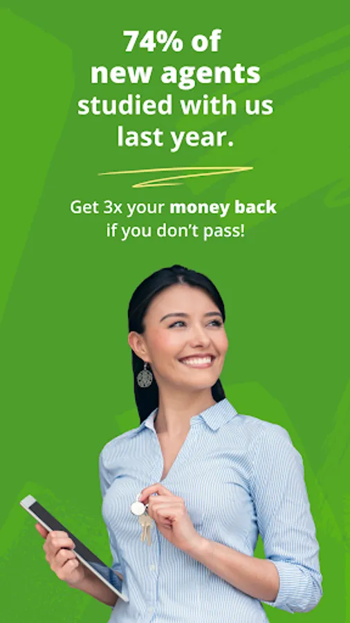 Install our real estate learning app, practice and get a real estate license easily! Perfect real estate exam prep for 2023!