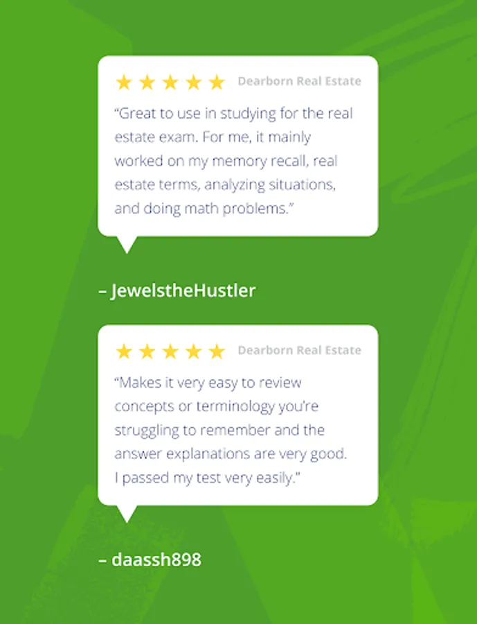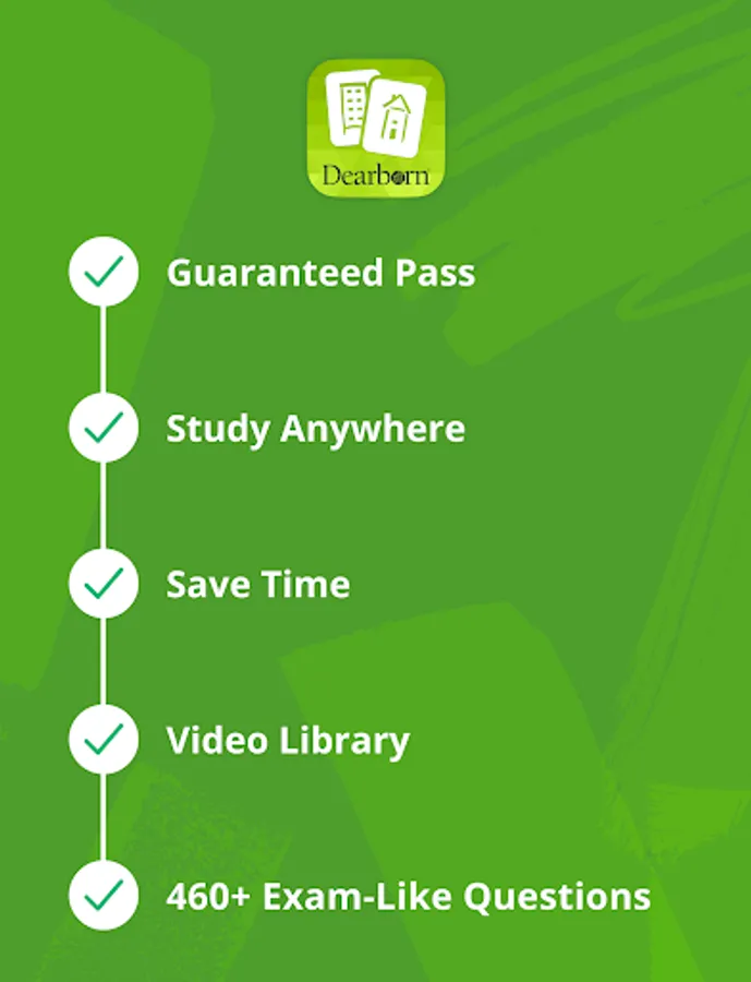 Get a real estate license with no stress! Study smart and pass the Real Estate Exam on the 1st try! Dearborn is a comprehensive real estate exam prep to help you prepare for the final test!