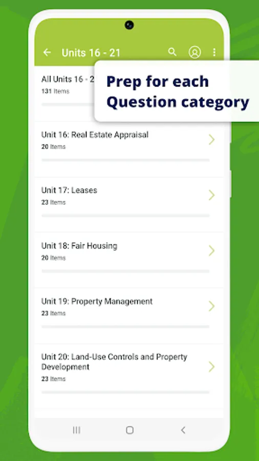 Our real estate exam prep offers a wide range of study materials, including practice questions, simulated exams, and study guides, all tailored to the specific content areas and format that you can find on the actual real estate exam. Track your progress and identify areas where you need to focus your study efforts. Study smart and get a certification. Dearborn is a perfect real estate learning app that can help you to succeed!