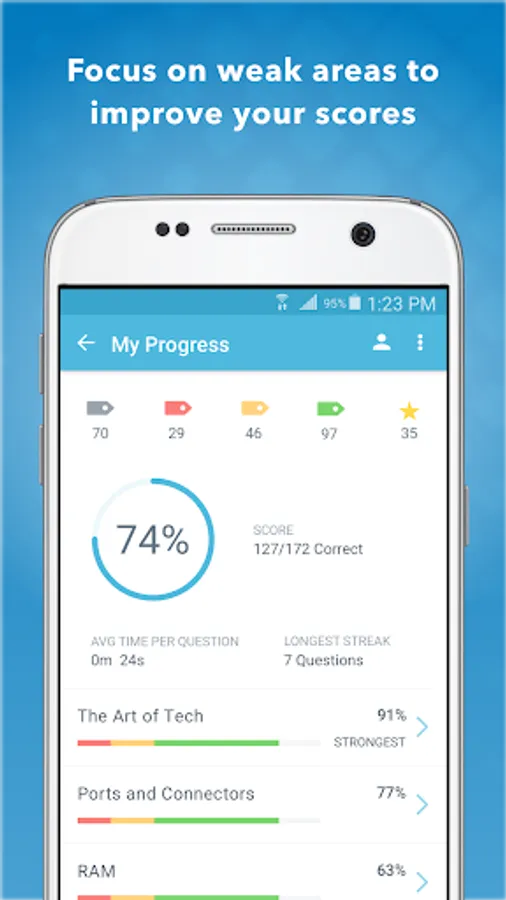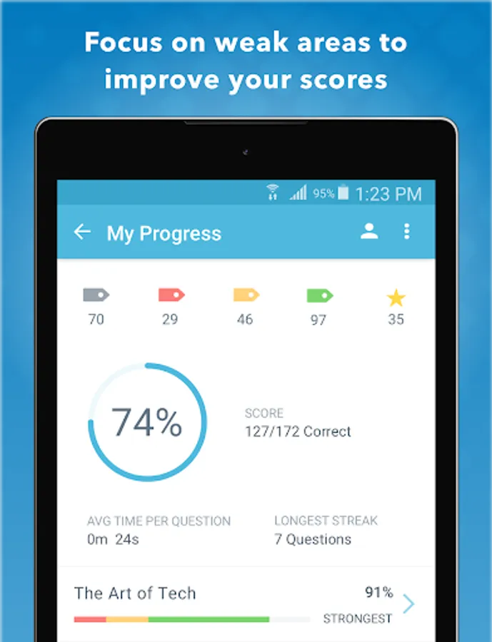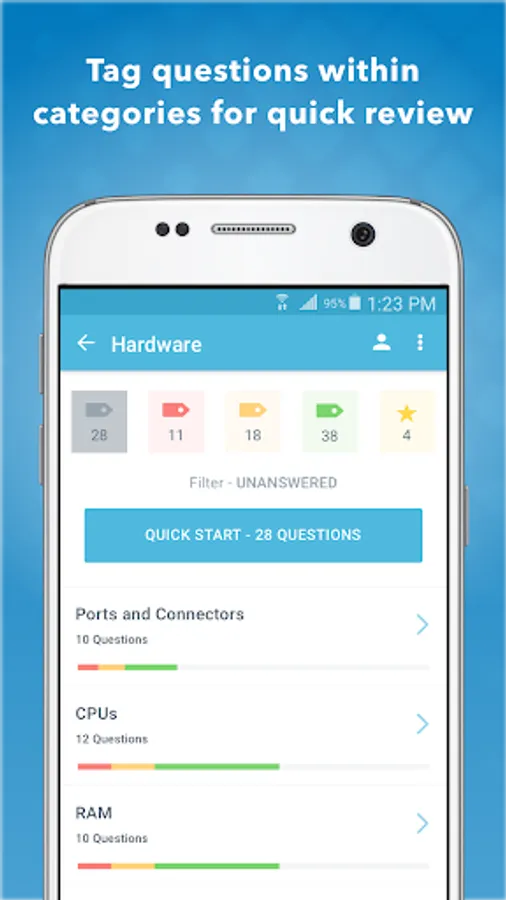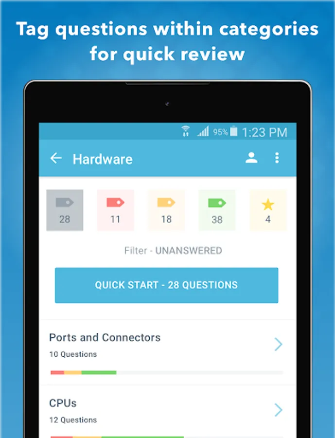 • Systematic studying from each category, all categories or create your own "Starred" set for easy review of problem areas
