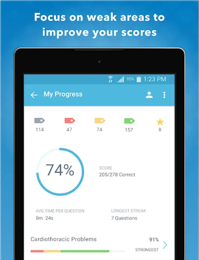 • In depth statistics that display your strengths and weaknesses