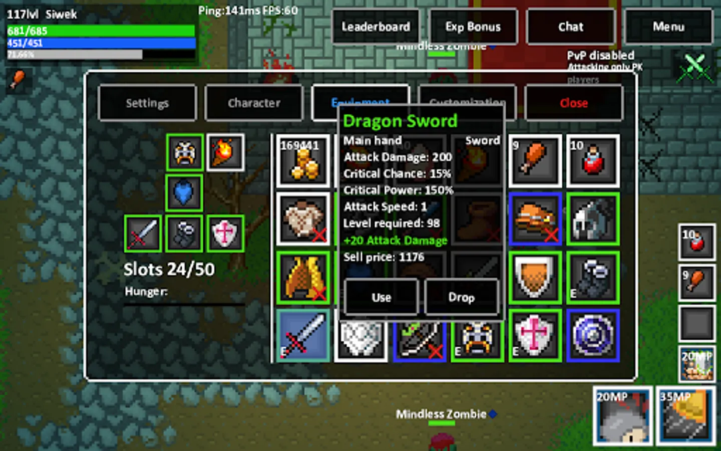- Collect loot with random stat bonuses. There is no two exactly same items in the game!