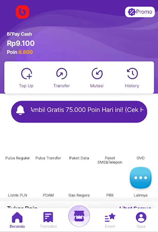 1. Top up Data Packages / Credit / PLN Tokens & Pay PLN / BPJS / PDAM / Postpaid / TELKOM / TV / Multifinance with Guaranteed Cheap Prices for Bipay Agents!