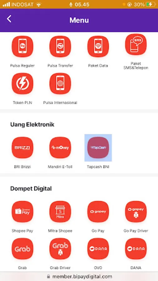 Prepaid Telkomsel Credit, Prepaid Indosat Credit, Indosat Ooredoo Prepaid Credit, XL Prepaid Credit, Prepaid Tri Credit, Prepaid Smartfren Credit, Prepaid Axis Credit, Postpaid Halo Card Credit, Postpaid Smartfren Credit, Postpaid Indosat Ooredoo Credit, Telkomsel Data Packages, Indosat Data Packages Ooredoo, XL Data Package, Tri Data Package, Smartfren Data Package, Axis Data Package, Cellular Postpaid, Electricity Bill, Electricity Token, BPJS Health, PDAM, Pay TV, PGN Gas, Telkom, Indihome Speedy, Multifinance, Bussan Auto Finance (BAF) ), Mega Auto Finance (MAF), Mega Central Finance (MCF), WOM Finance, MPM Finance, Bima Finance, Radana Finance, PBB, and many more.