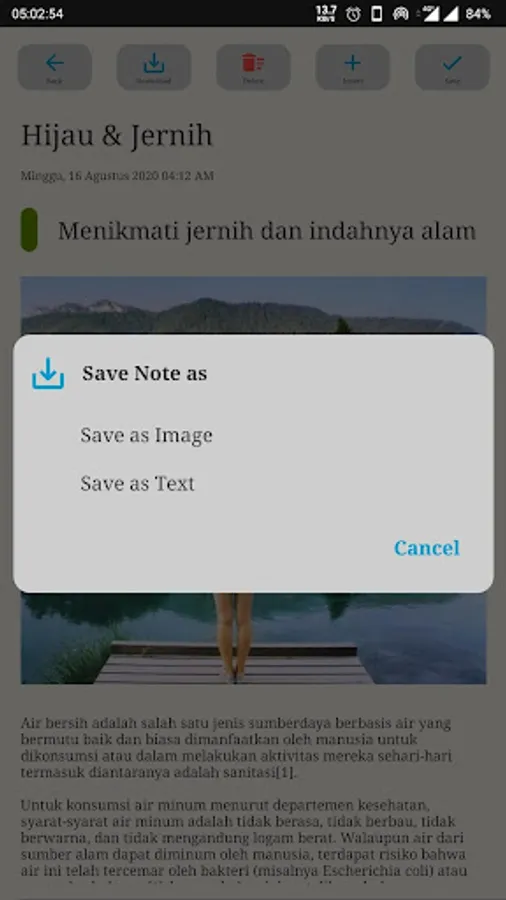 - Save notes as images or text to the device.