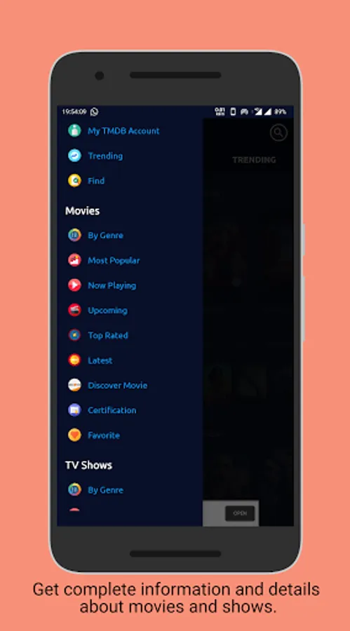 All movies and shows data comes from TMDb (www.themoviedb.org). The application fully uses the website's API, but is not endorsed or certified by TMDb.