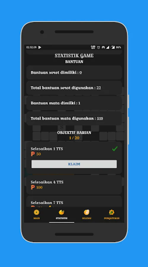 - View completed crosswords with score statistics and completion time.