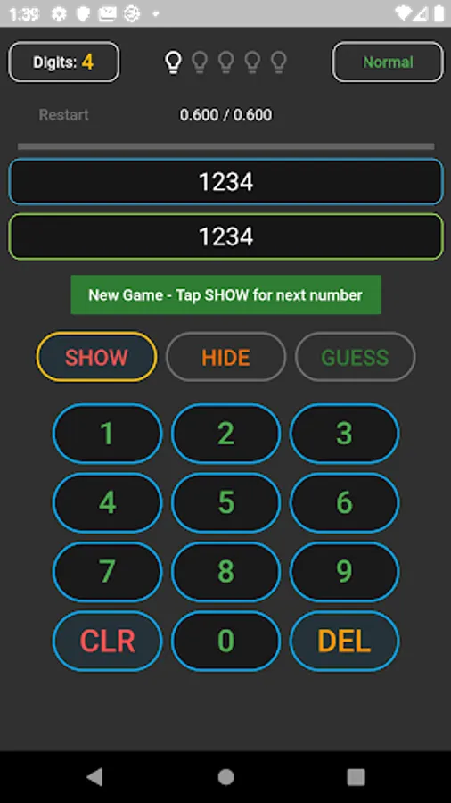 1. A number is displayed for a split second. 5 numbers per game.