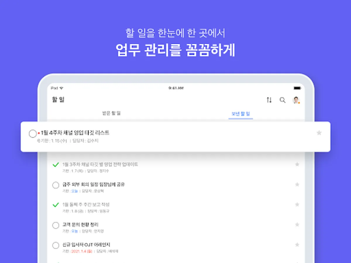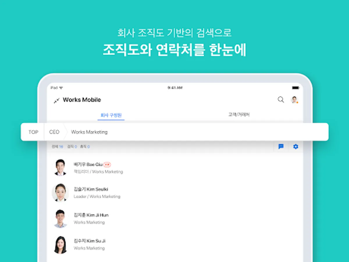 When working at ‘Naverworks’, which has been certified with the world’s highest level of security technology, keep your privacy safe and secure! Communicate quickly and easily with co-workers and handle tasks conveniently anytime, anywhere with the ‘Naver Works’ mobile app.