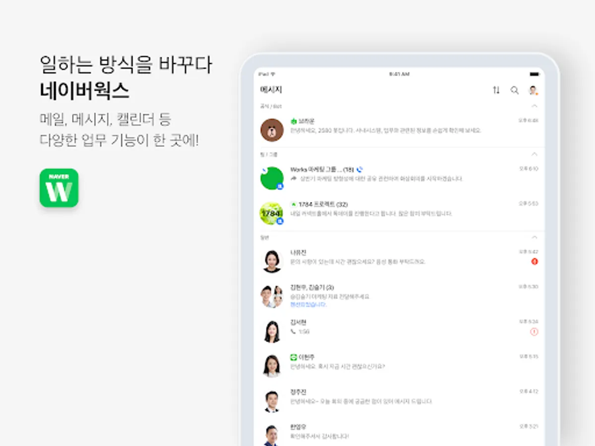 'NaverWorks', a public work collaboration tool created by Naver, provides various functions necessary for work, such as mail, messenger, calendar, address book, to-do, survey, and bulletin board, in one mobile app, PC web, and PC app (in preparation). service.
