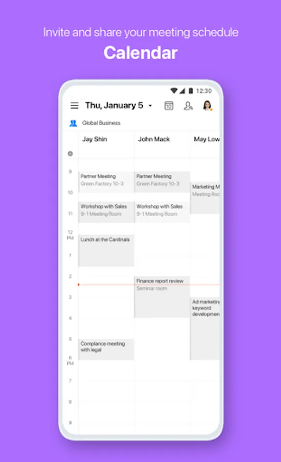 – View colleagues' schedules at a glance, with quick view of team/group schedules