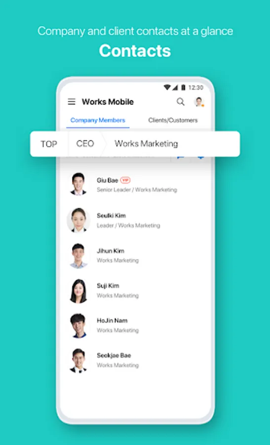 4. Contacts: Address book with a at-a-glance view of your organization chart and contacts
