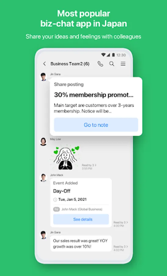 LINE WORKS is a tool that provides all the communication you need for work in one app, including the LINE chat and stamps, as well as a calendar, and address book.