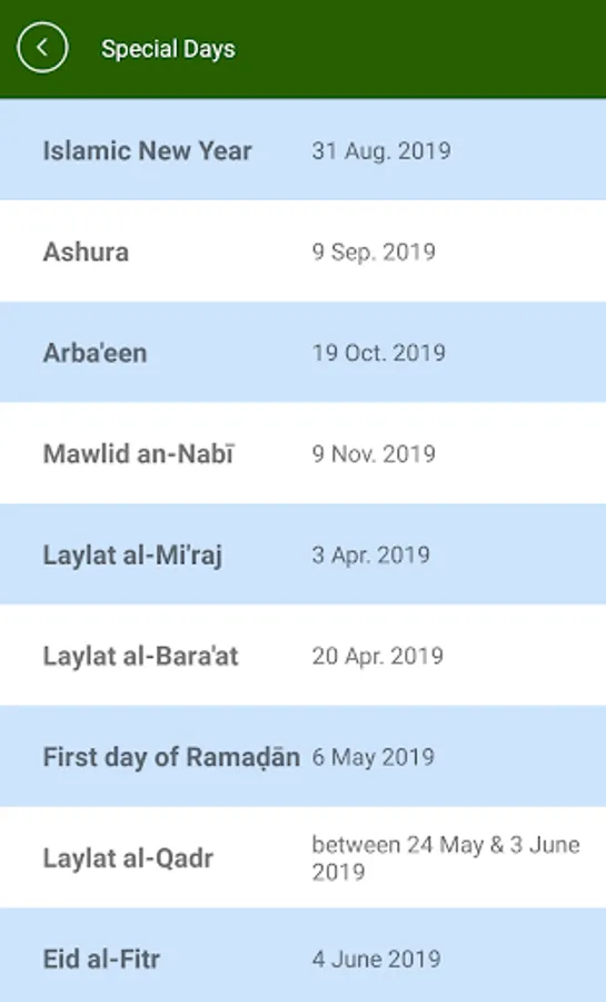 - Important Islamic Dates included
