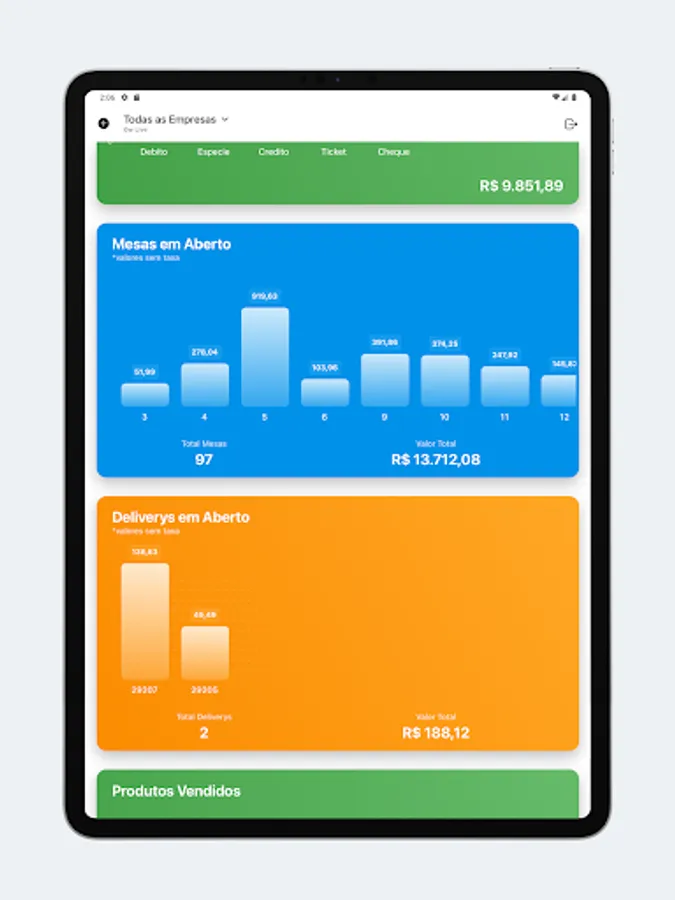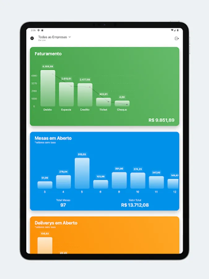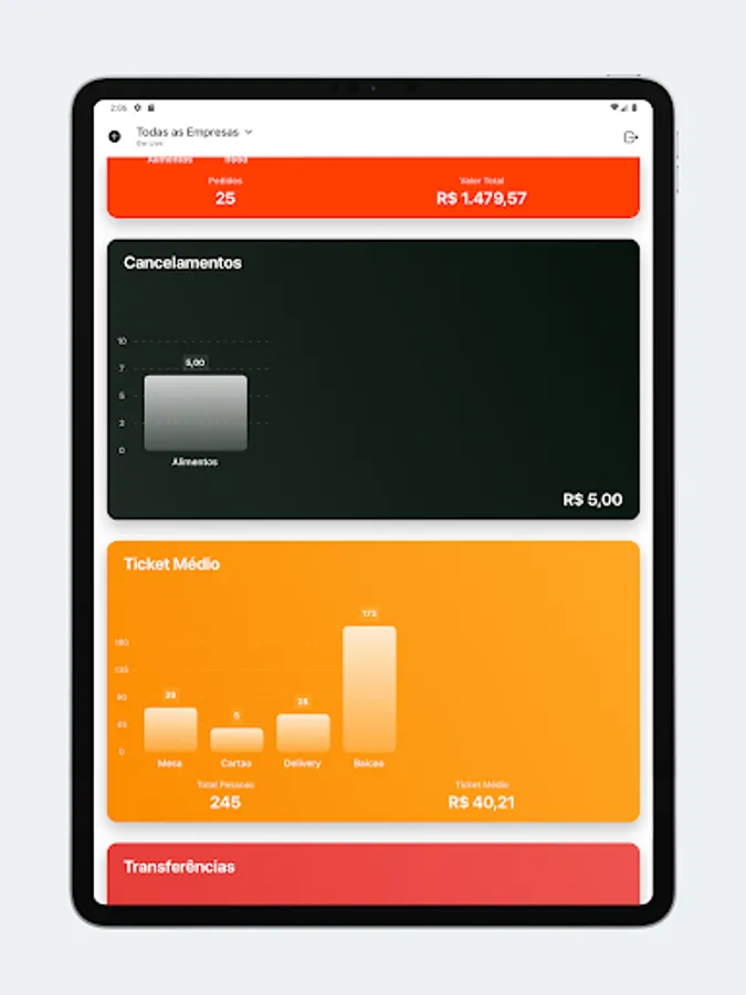 Stay on top of your sales, average ticket, products sold, open tables, delivery open, online sales (Delivery App), cancellations, transfers, discounts, stop waiting and more.