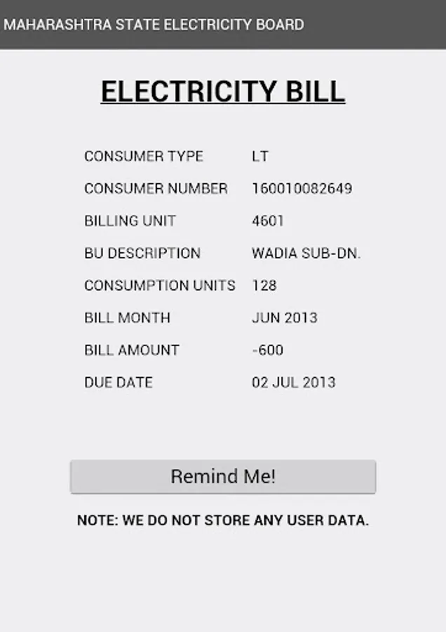 Now to overcome that fear, we have created an app which let you know when is the last date along with the amount due on your electricity bill.